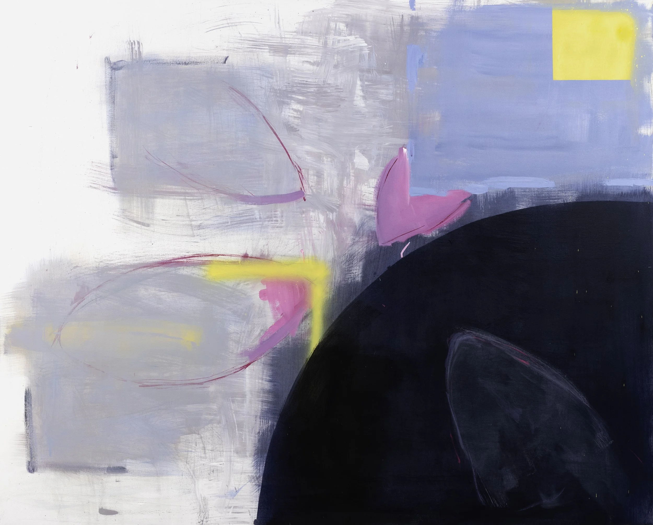 Acrylic, oil stick, spray paint and ink on canvas, 48x59 inches
